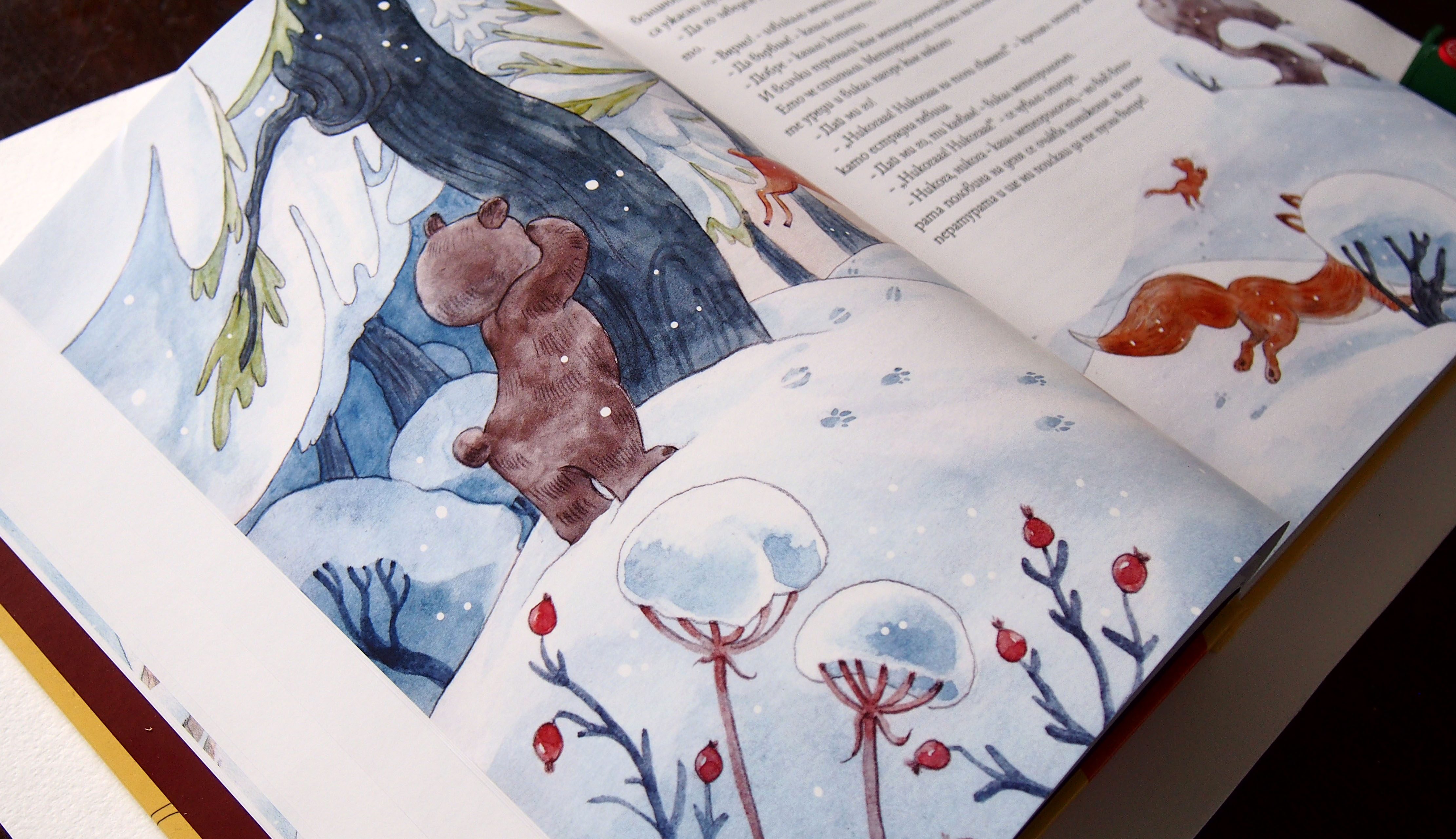 “Five fairytales”- written by Valeri Petrov, published book by Trud CC. More than 40 watercolor illustrations for the 5 fairytales with many different characters in every seson of the year.