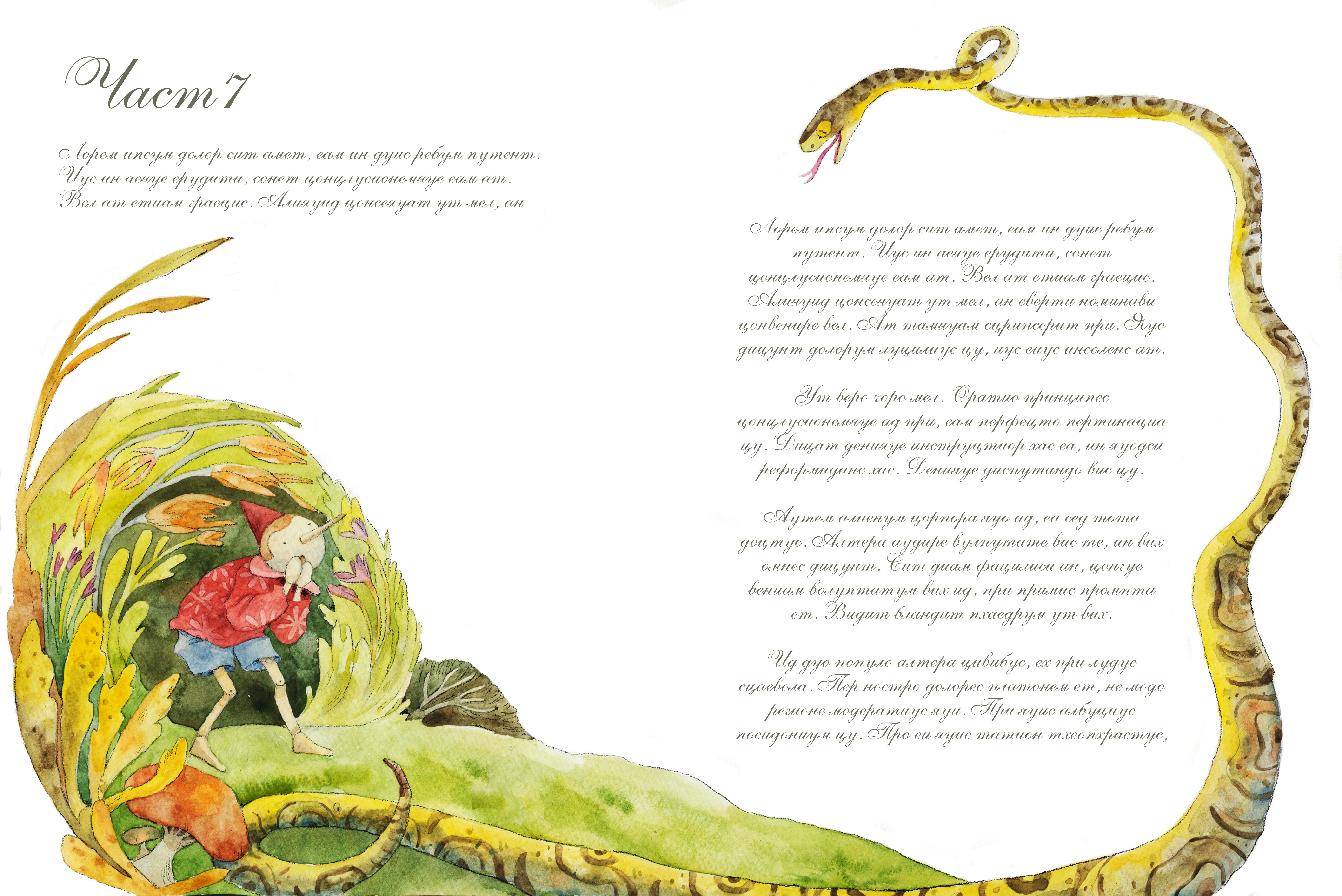 “Pinocchio”- published book by Trud CC. More than 30 watercolor illustrations for this classic story.
